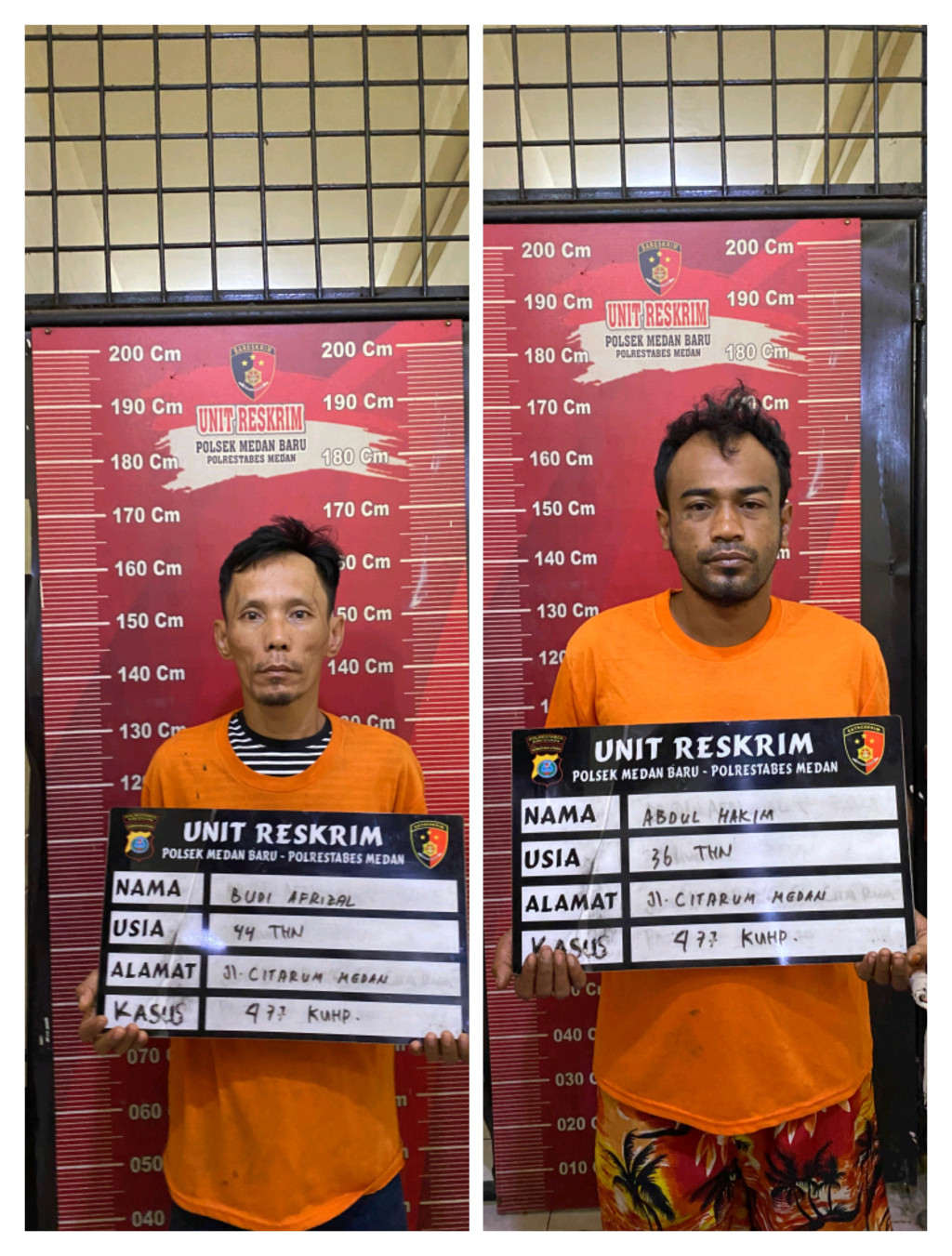 "Berdasarkan pengaduan korban Muslim dengan nomor polisi : LP/B/351/I/2026/SPKT/POLSEK MEDAN BARU/RESTABES MEDAN /POLDA SUMUT, tim unit Reskrim Polsek Medan Baru melakukan penangkapan terhadap kedua tersangka," sebut PM. Tambunan, kepada awak media, Senin (12/1/2026) malam.