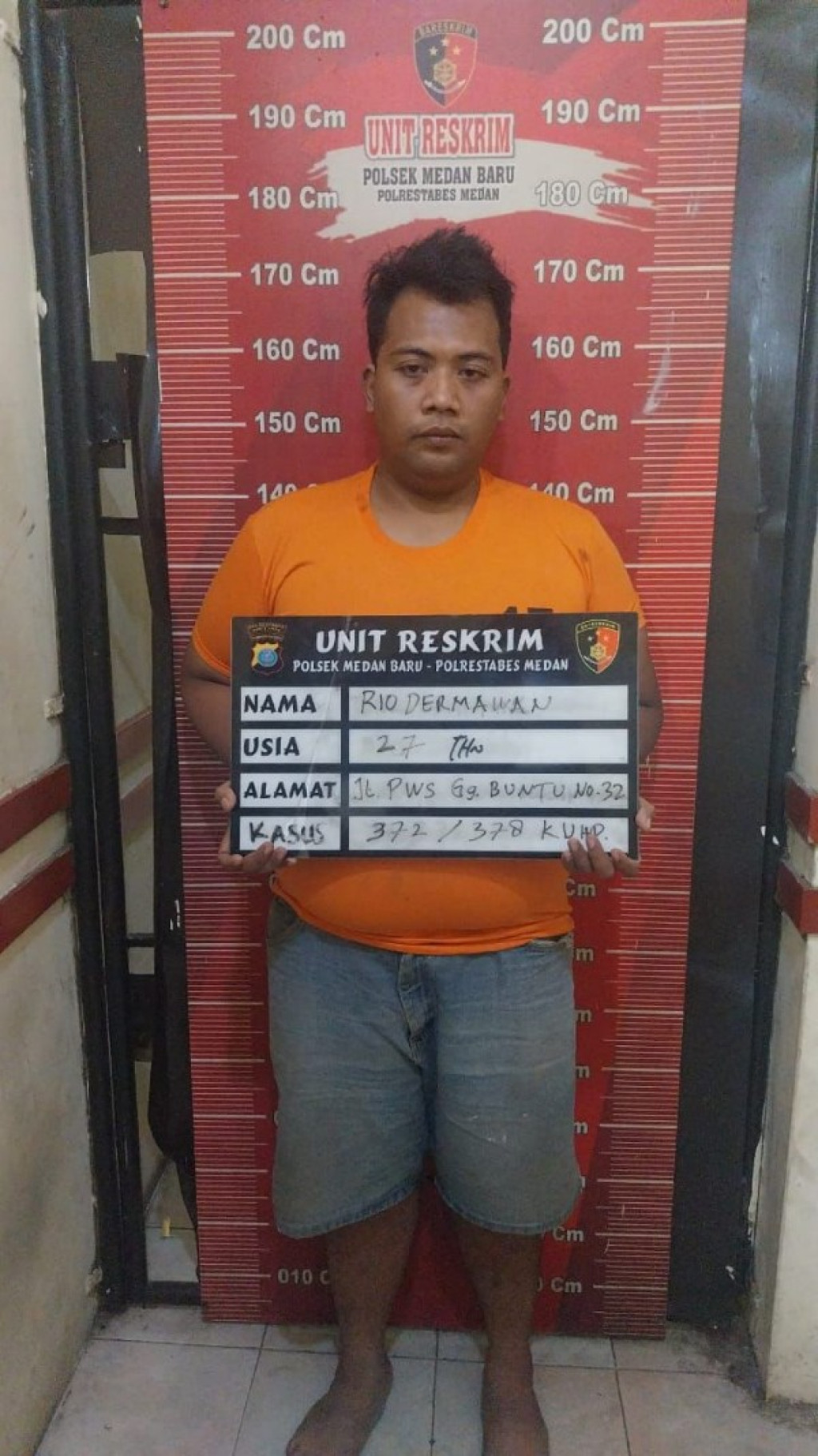 Pelaku yang ditangkap itu bernama Rio Dermawan (27) warga Jalan PWS Gang Buntu II No.32 C, Kelurahan Sei Putih Timur II, Kecamatan Medan Petisah, Kota Medan.